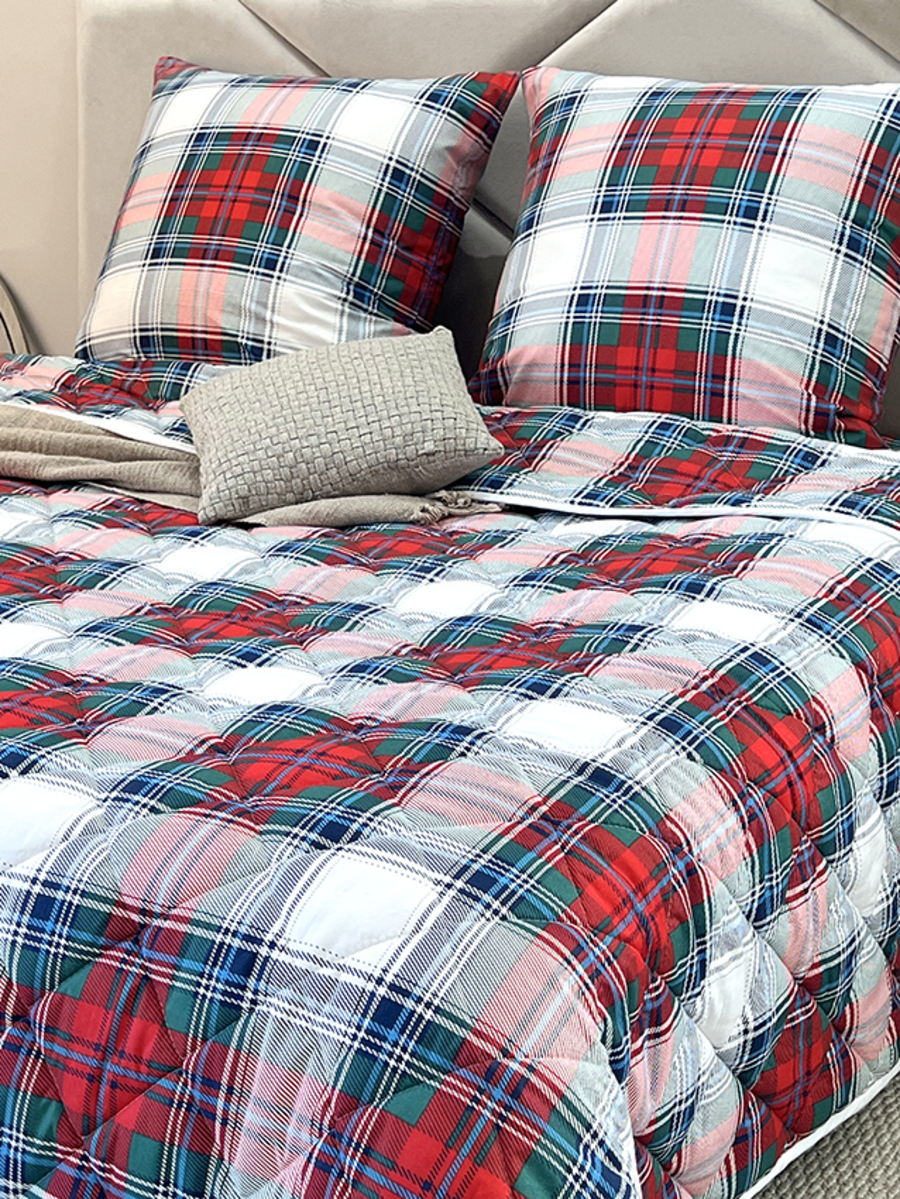 Уникальность набора в том, что в него входят: наволочки, простыня и легкое всесезонное одеяло. Это современное и очень удобное решение, которое идеально подходит тем, кто хочет быстро застилать кровать. Покупая постельные комплекты с одеялом вы экономите на покупке отдельного одеяла. Так же одеяло можно использовать как покрывало. Комплект легко стирается в обычной машине. Состав комплекта: Полисатин 90 г/м2, одеяло - наполнитель синтепон 150 г/м2.