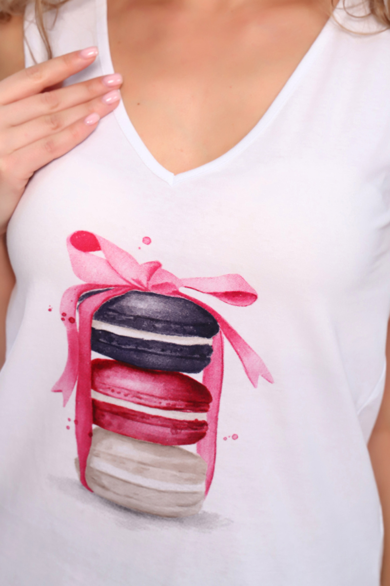 Костюм домашний, повседневный универсального назначения из 100% хлопка, состоящий из майки с V-образным вырезом и печатным рисунком на груди, бриджи с внутренними карманами и манжетой по низу.
